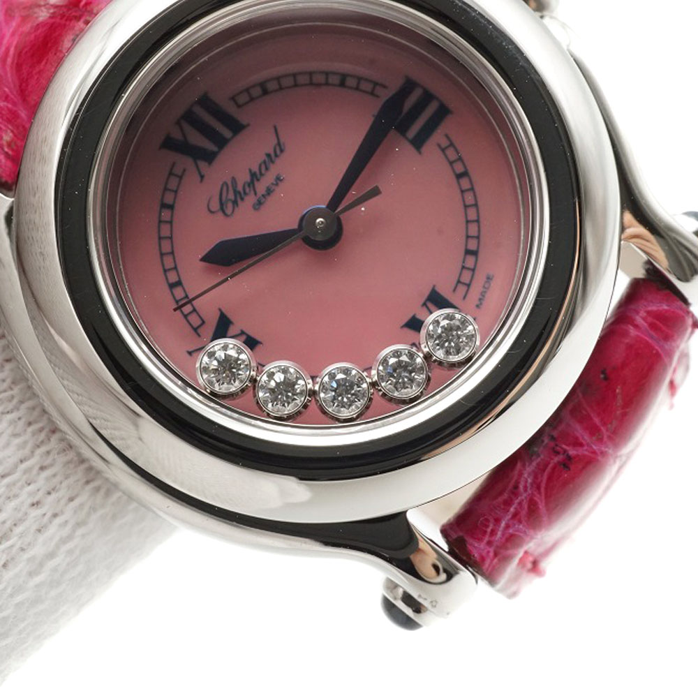 | 商品説明 | ショパールのハッピースポーツのご紹介です。 ショパールの人気モデル「ハッピースポーツ」より5Pダイヤが入った可愛らしいモデルです。 ピンクシェル文字盤にピンクカラーのベルトがよりおしゃれな印象を与えます。 この機会に是非いかがでしょうか。 ※尚、当サイトの販売金額より店頭での販売金額の方をお安く設定させて頂いております。予め、ご了承下さいませ。 |