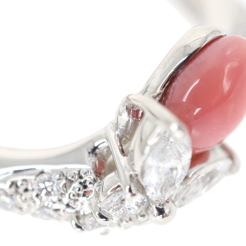 | 商品説明 | Pt900【プラチナ900】コンクパール ダイヤモンドリングのご紹介です。 パールの中でも非常に希少なコンクパールがセッティングされた可愛らしいデザインのリングです。 コンクパールはカリブ海に生息するコンク貝(ピンクガイ)からごくまれに産出される天然真珠。 養殖が非常に難しく、市場での出回りも少ない石となっており、採取量は1万~1万5千個に1つといわれています。 火焔模様が特徴的なコンクパールですが、今回のお品物にもしっかりと火焔模様が認められておりなかなか手に入れる事のできないお品となっております。 白や黄色、オレンジ・茶色等さまざまなカラーのコンクパールがありますが、ピンク色の色味が比較的濃いお品ですのでコレクターの方にもおすすめです。 お探しの方はこの機会にぜひいかがでしょうか。