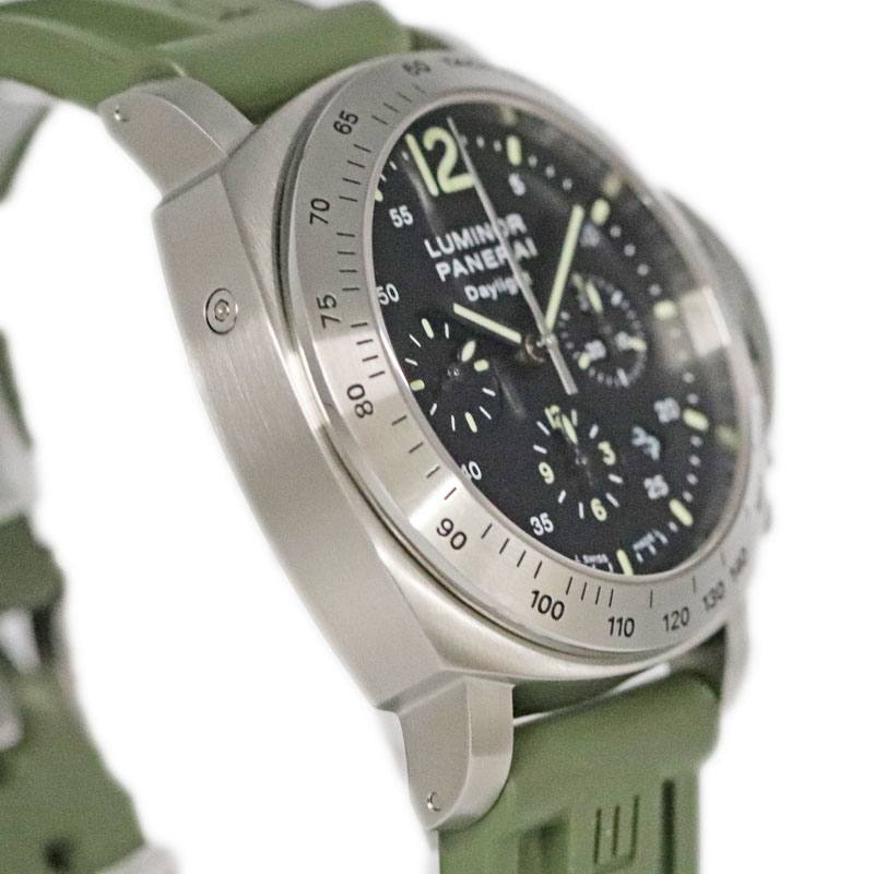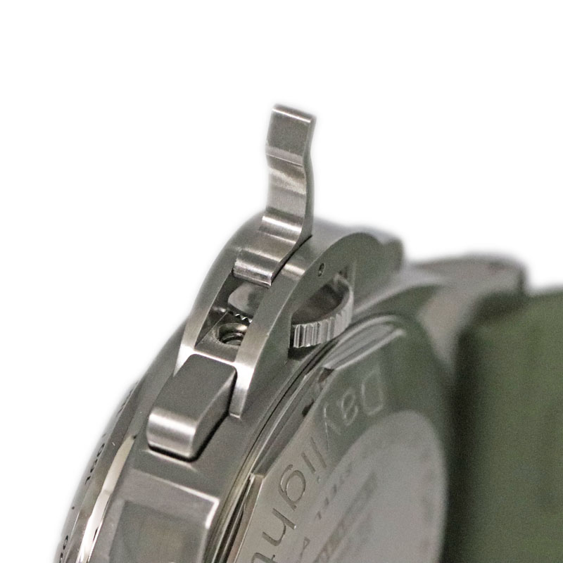 パネライの象徴でもあるリューズプロテクターに、加えクロノグラフ機能を搭載しており、高い実用性・デザイン性を有します。