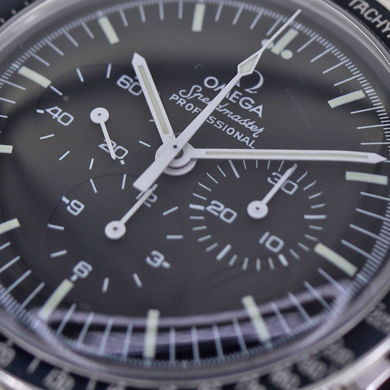 | 商品説明 | ■オメガのスピードマスタープロフェッショナル5thモデルです。 1969年のアポロ11号月面着陸成功を記念して作られた 世界限定 スピードマスター5thモデル Cal.861搭載 裏蓋には「THE FIRST WATCH WORN ON THE MOON」と刻印されておりストレートライティングと呼ばれる裏ブタのデザインです。 ムーブメントは前モデルに搭載されていたCal.321から6振動にパワーアップしたCal.861が搭載されています。1968年から実に30年近くの間生産され続けてきた名機です。 人気のステップダイヤルではありませんが、ブレスレットも1171になっております。 |