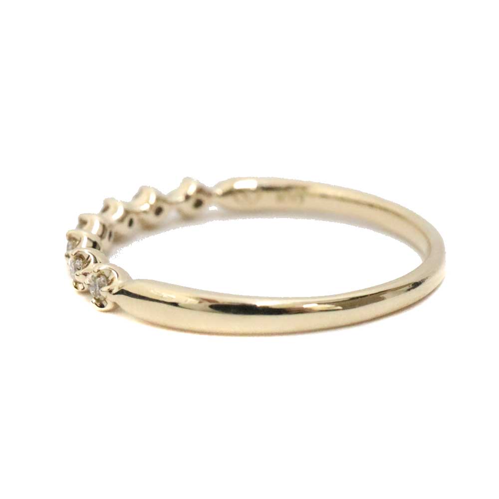 細かなダイヤモンドがはめ込まれたデザインのリングです。 控えめで上品な印象のリングで、細めなので重ね付けなどしてもいいですよ。 この機会に是非いかがでしょうか。