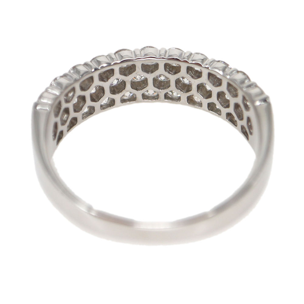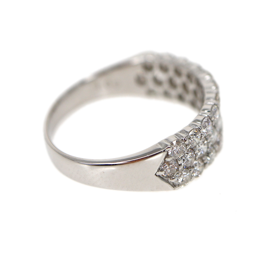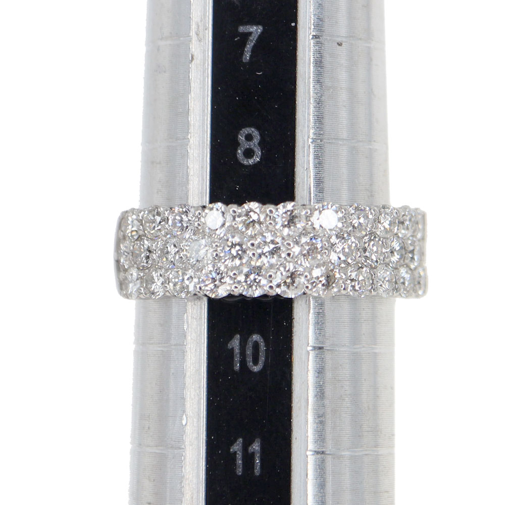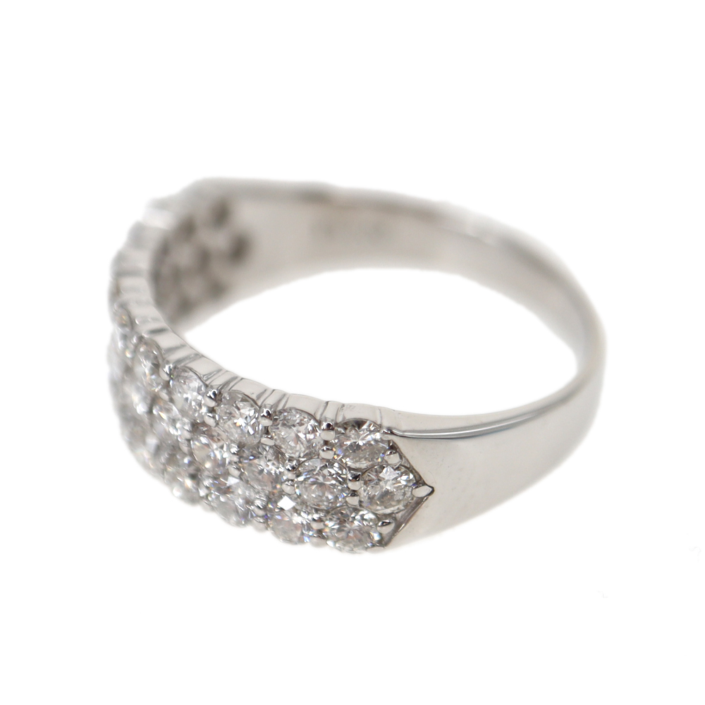 敷き詰められたダイヤモンドが美しいリングです。 プラチナの輝きに加え、3列に施されたダイヤモンドがキラキラと輝きます。