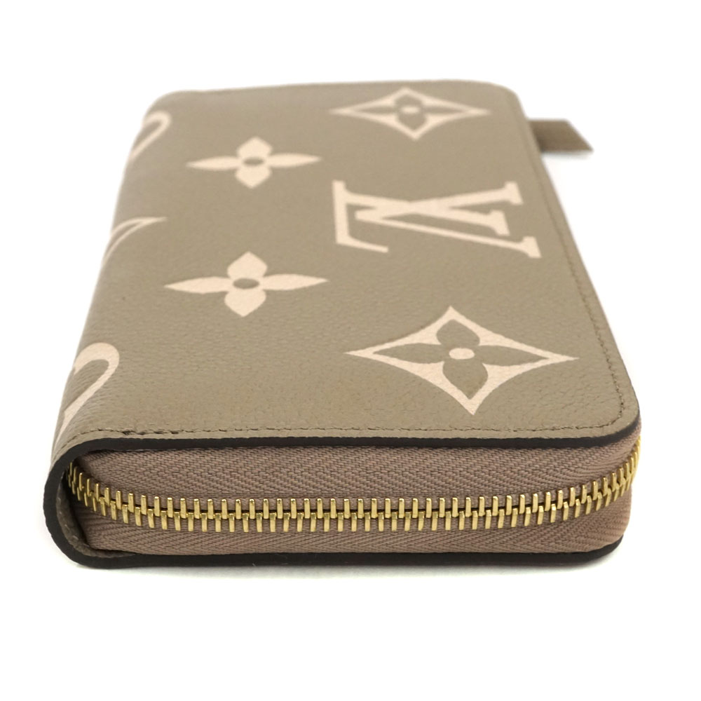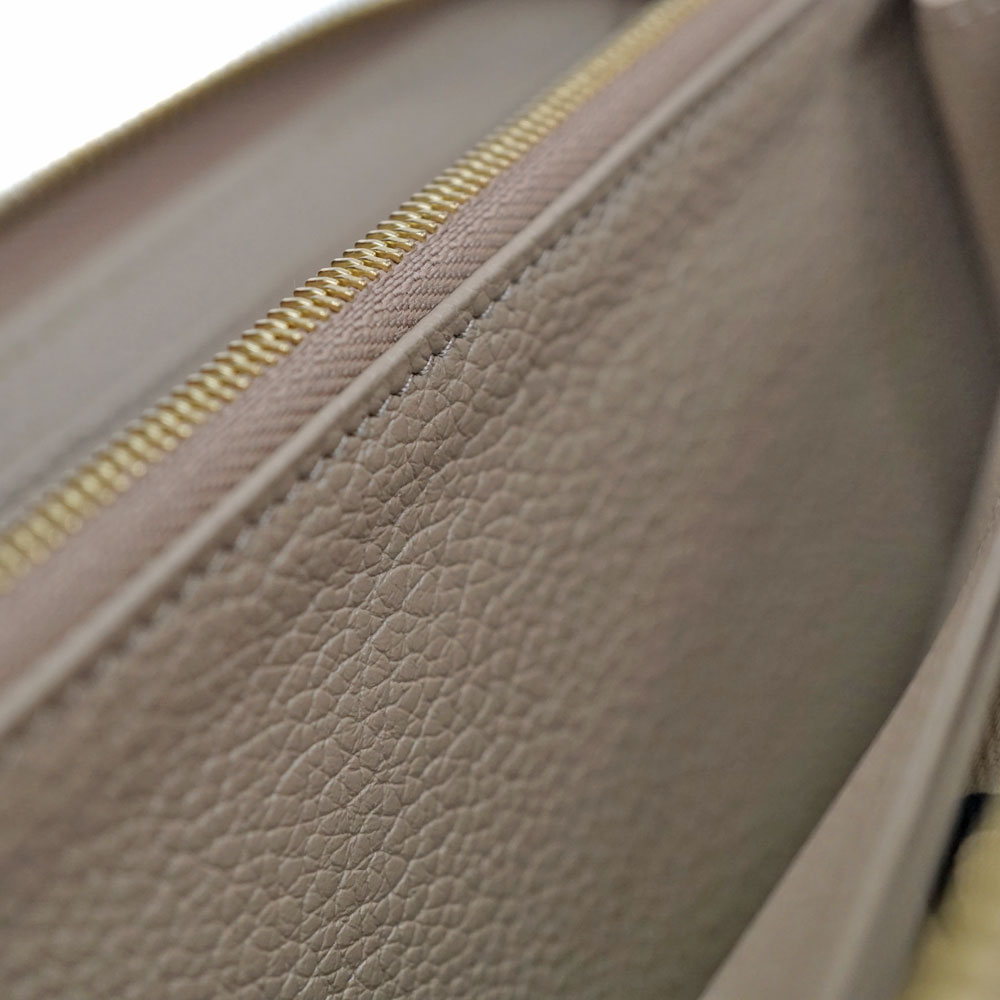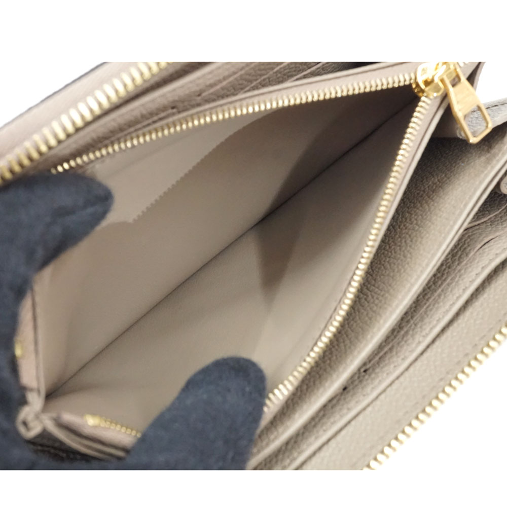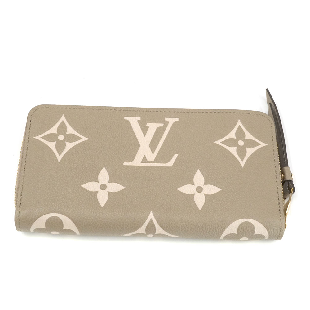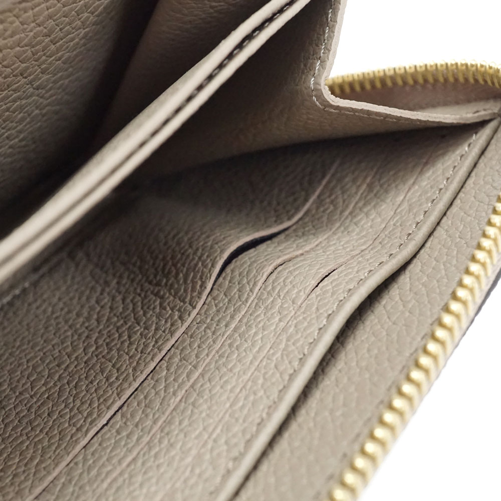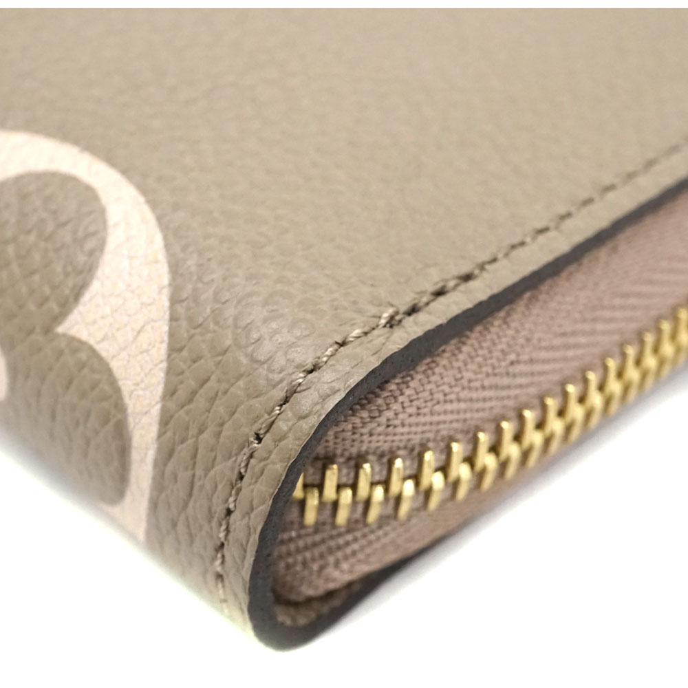 上質なレザーを使用したアンプラントレザーの長財布です。 大きなモノグラム柄のデザインが特徴的です。 ラウンドファスナー開閉で使い勝手がよく、機能性にも優れたお品物です。 カラーは女性に人気の「トゥルトレームクレーム 」ベージュ系になります。 お探しの方はこの機会に是非いかがでしょうか。