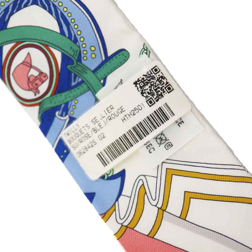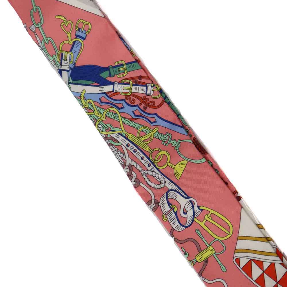 鞍職人の花束がモチーフとなり、ベルトストラップや馬具等がデザインされたピンクカラーのツイリーです。 バッグに巻いたり、身に付けたり様々なアレンジで楽しめます。 この機会に是非いかがでしょうか。