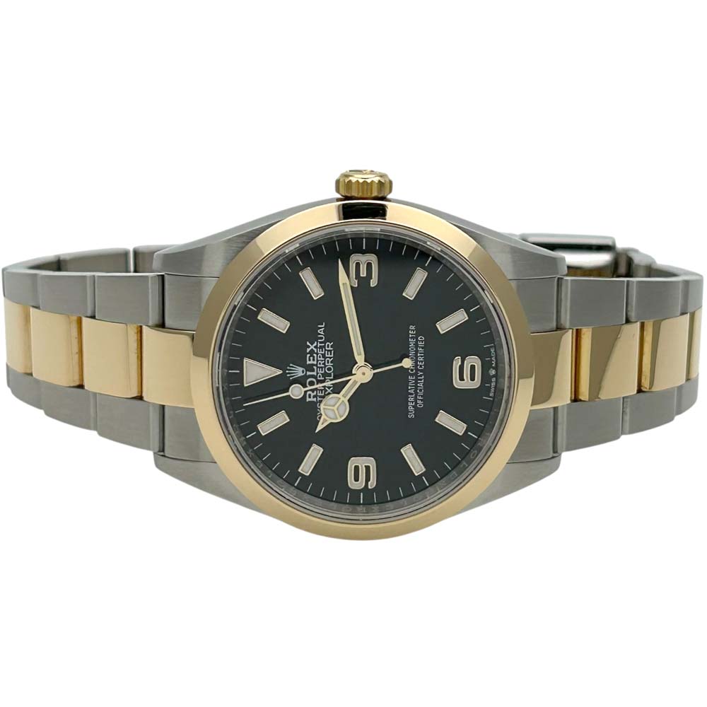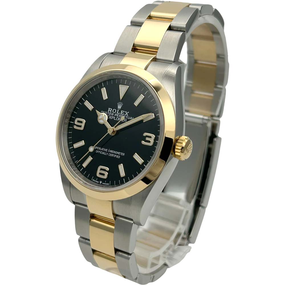 | 商品説明 | ロレックスのエクスプローラー36(Ref.124273)は、ステンレススチールとイエローゴールドのコンビネーションが特徴です。このモデルは耐久性に優れたオイスターケースを備え、シンプルで読みやすいブラックダイアルを持っています。高精度を誇る自動巻きムーブメントを搭載し、視認性を高めるために針とインデックスには夜光素材が施されています。防水性能に優れ、スポーツやアウトドアシーンにも適したデザインとなっています。