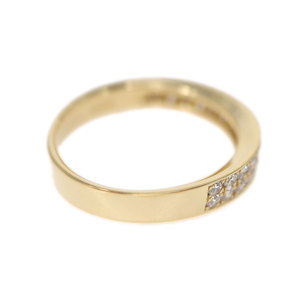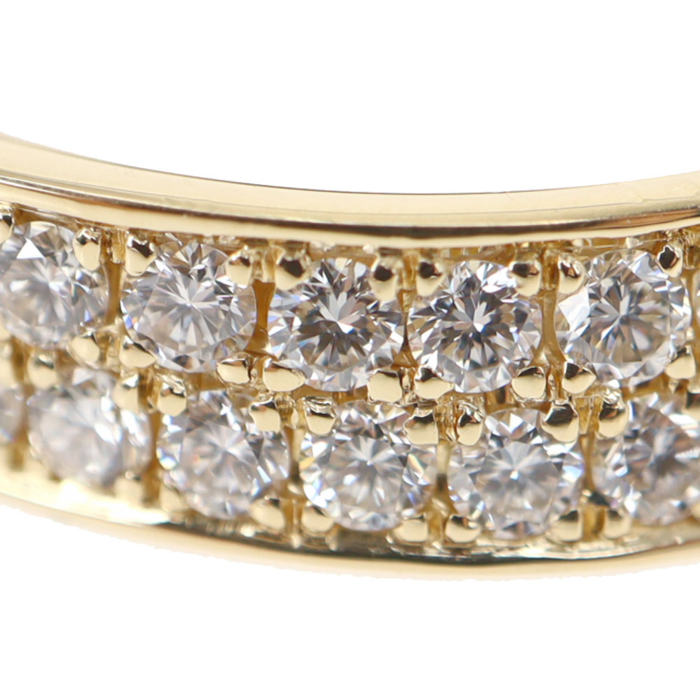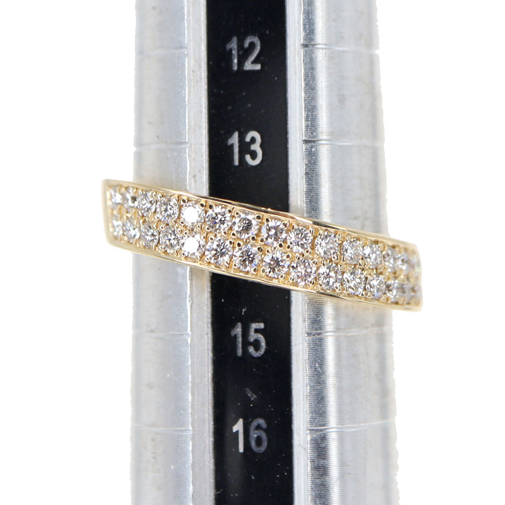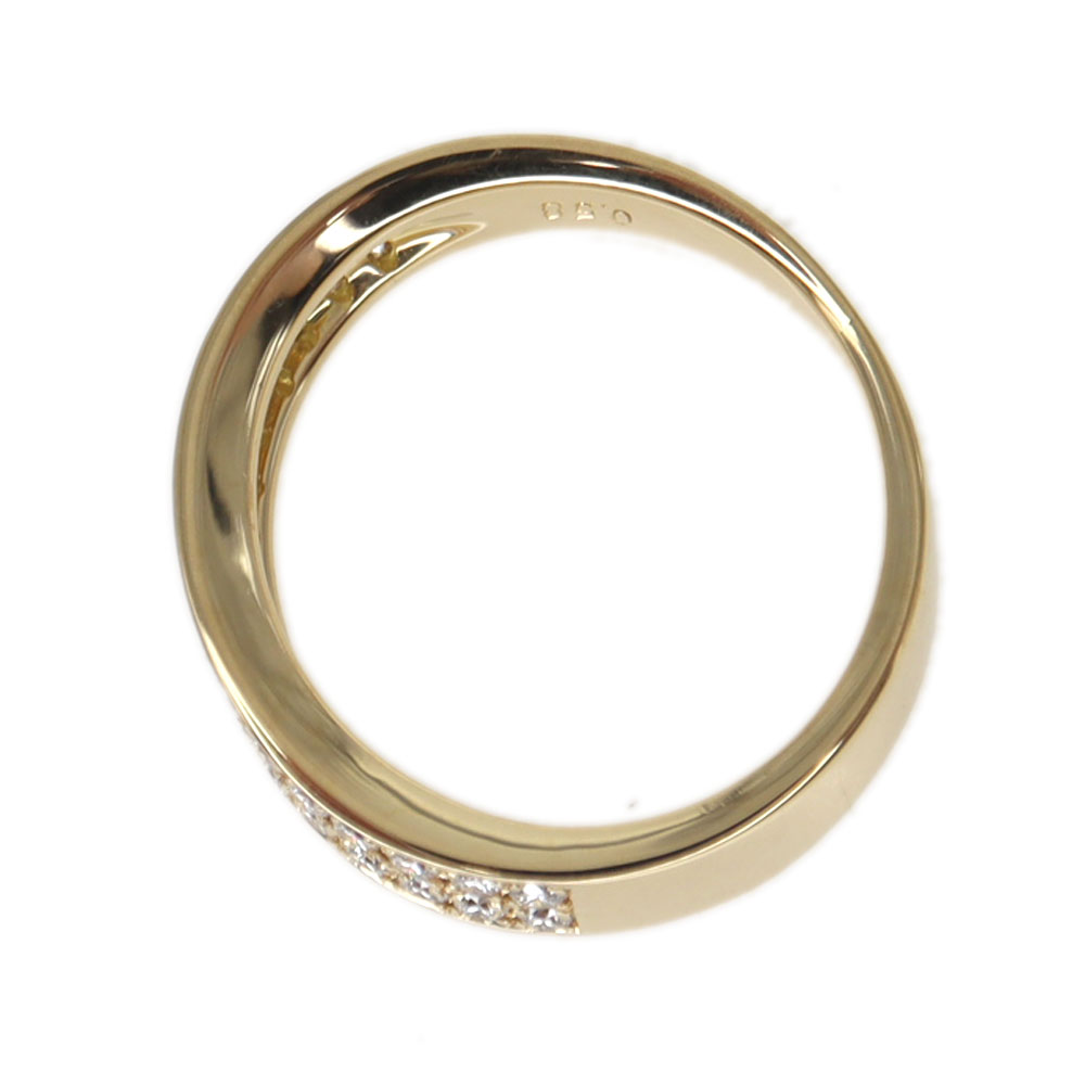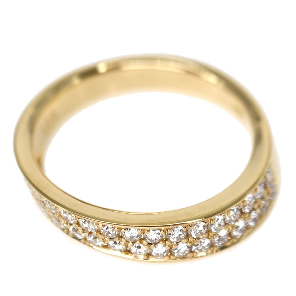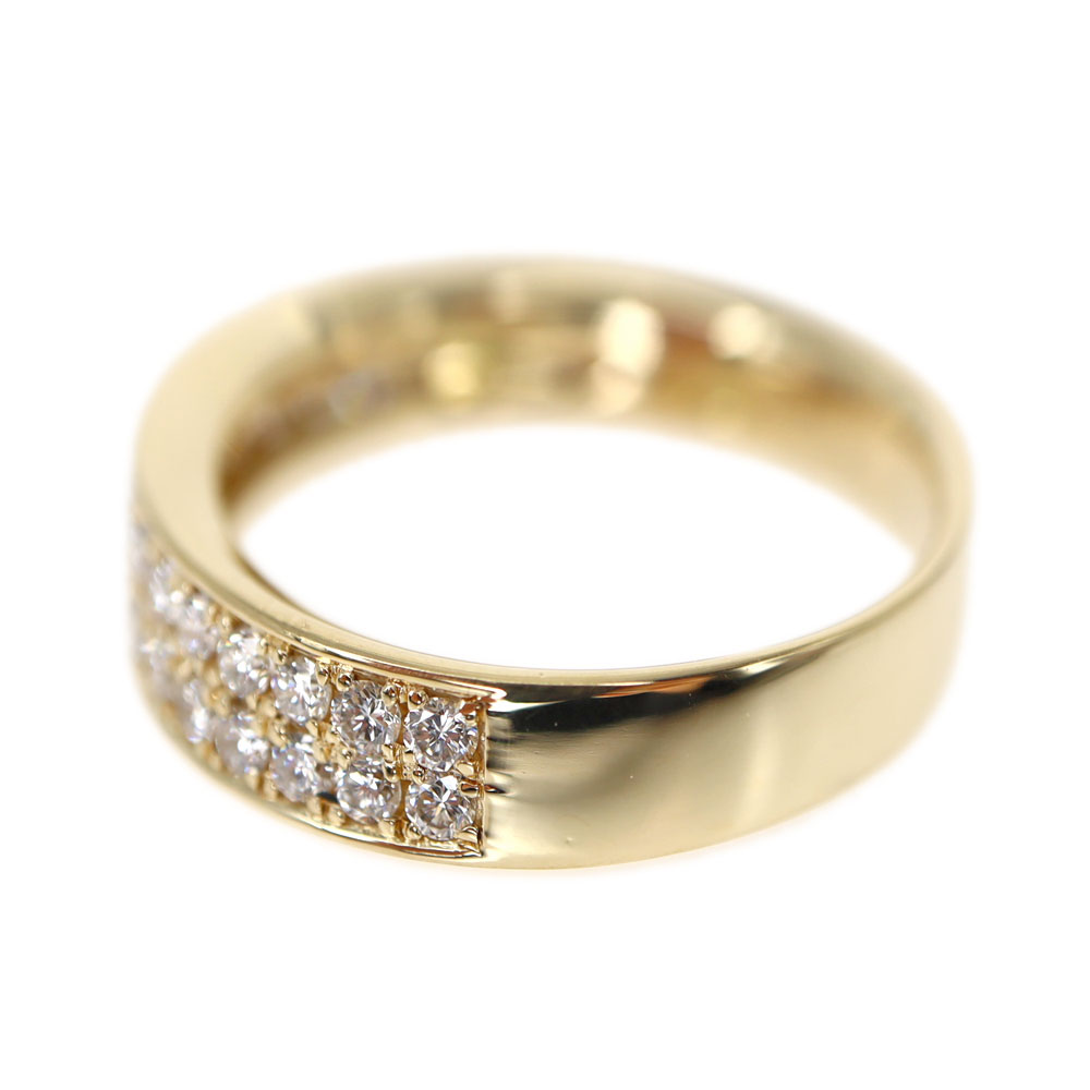 贅沢にセッティングされたダイヤモンドが、指元で眩い輝きを放つエレガントなリング。 2列に施されたダイヤモンドが、気品ある華やかさを演出します。 正面から見て傾斜になっているデザインが個性的でもあります。