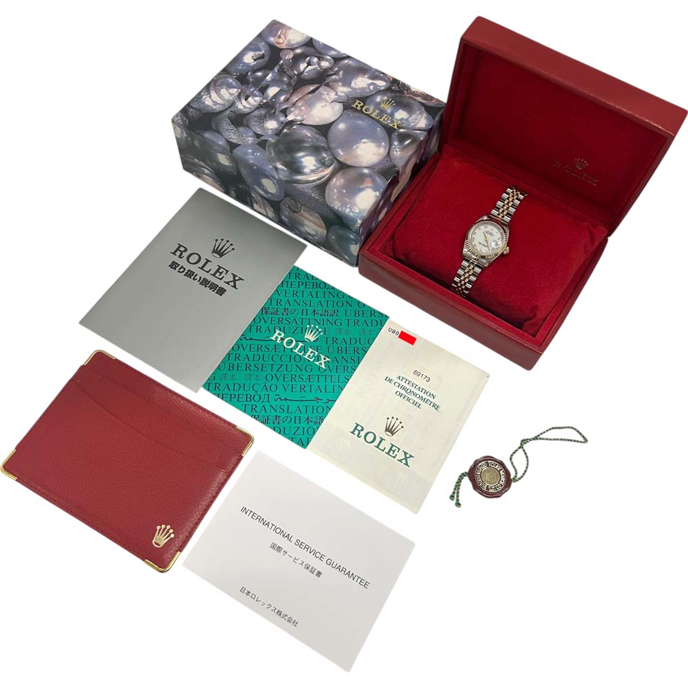 | 商品説明 | ロレックスのデイトジャスト69173は、クラシックなデザインで知られる自動巻き腕時計です。ステンレススチールとイエローゴールドのコンビネーションが特徴で、ジュビリーブレスレットを備えています。文字盤には日付表示機能があり、サファイアクリスタルガラスが使用されています。