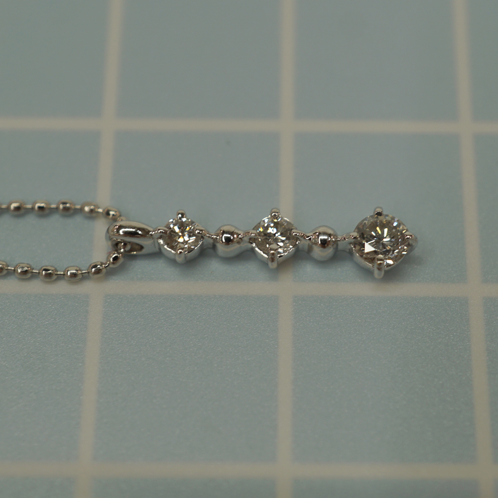 縦3連にサイズ違いのダイヤモンドが配置された、小ぶりなネックレスです。 お探しの方はこの機会に是非いかがでしょうか。