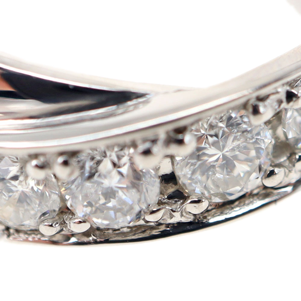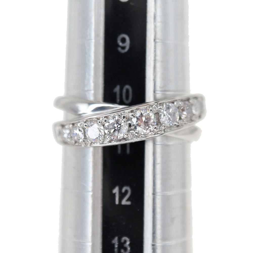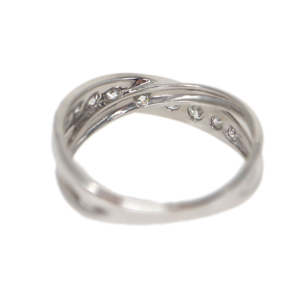 クロスに重なったように見えるリングのデザインが美しい指輪です。 プラチナの輝きに加え、埋め込まれたダイヤモンドがキラキラと輝きます。