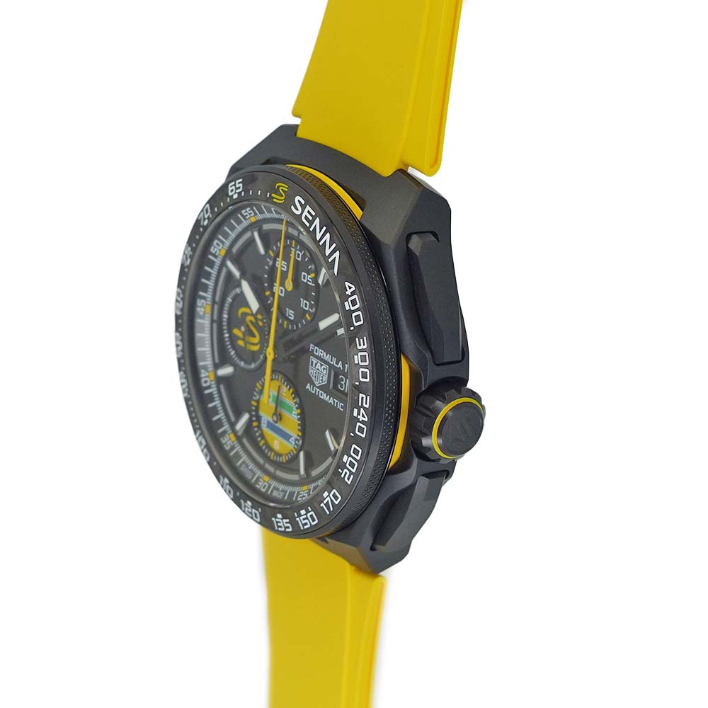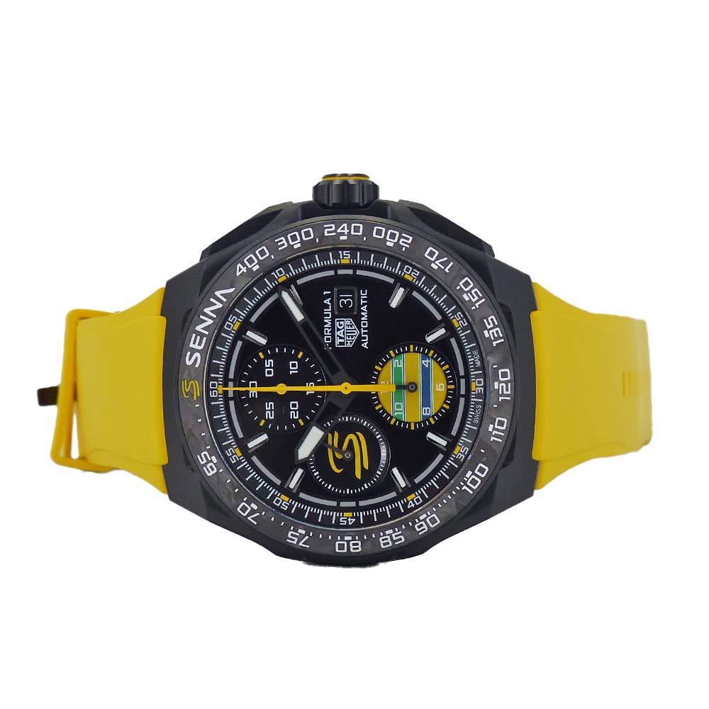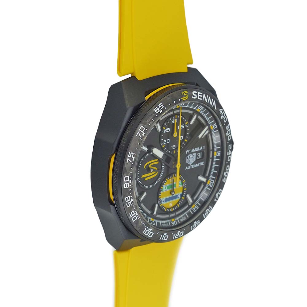 | 商品説明 | タグ・ホイヤーが誇る伝説的パートナーシップを体現したモデルが、タグ・ホイヤー フォーミュラ1 クロノグラフ × セナ 44mmです。アイルトン・セナの大胆さや恐れを知らない走り、そしてモーターレーシングにおける揺るぎない情熱と究極を求める精神を受け継ぎ、そのエネルギーを唯一無二のデザインに昇華。DLCコーティングを施したチタン素材やフォージドカーボンベゼルなど、厳選されたハイエンドなマテリアルを組み合わせ、力強く堂々とした存在感を放つタイムピースに仕上げています。
