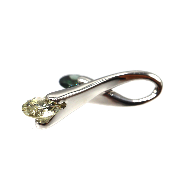 Pt900の重厚な輝きの中に、希少なグリーンダイヤモンド(0.183ct)が鮮やかに映えるペンダントトップです。