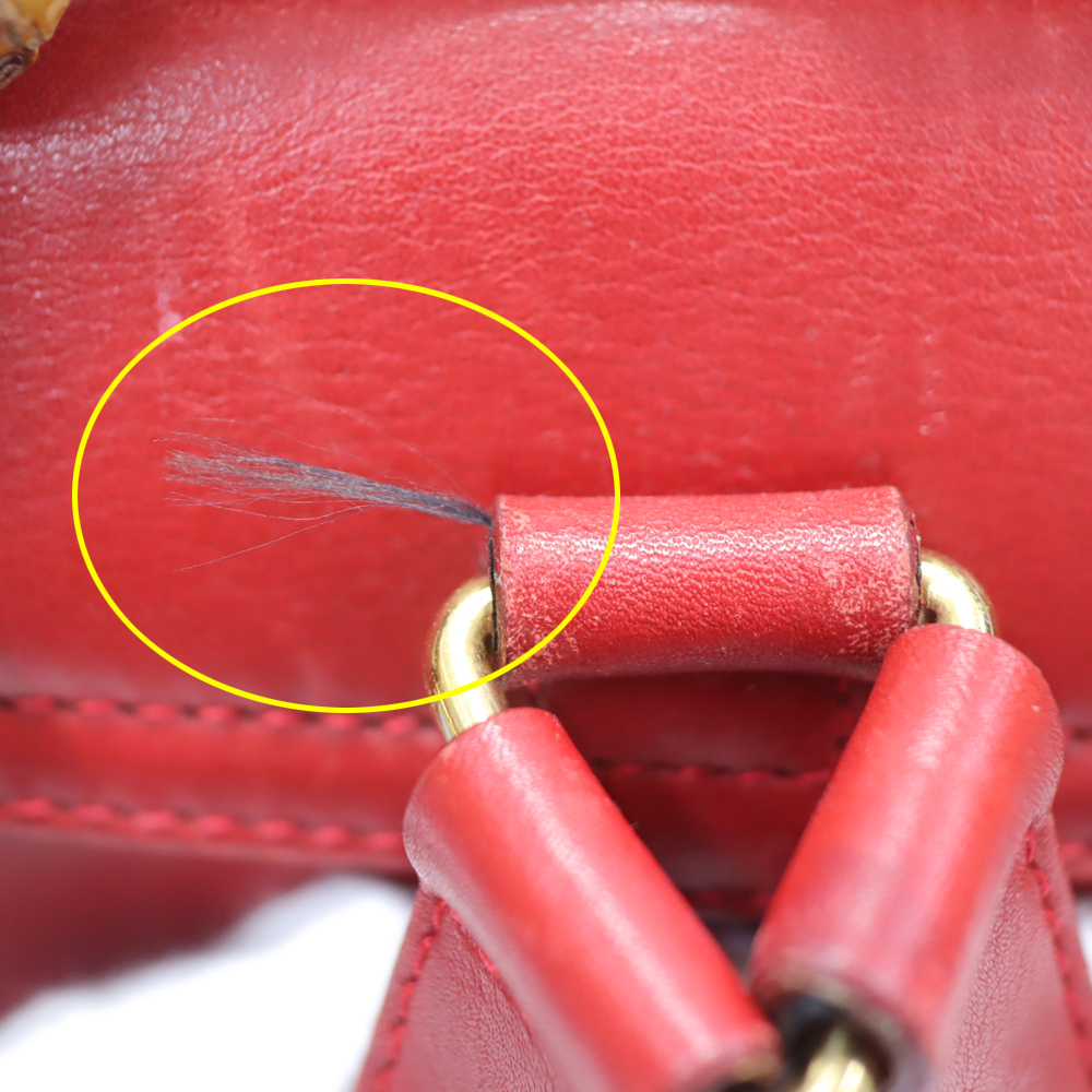 | 商品状態 | ■角・フチが擦れています。 ■持ち手の竹部分にひびが入っています。 ■レザー部分に黒いシミが複数個所あります。 ※状態は画像と合わせてご確認ください。 |