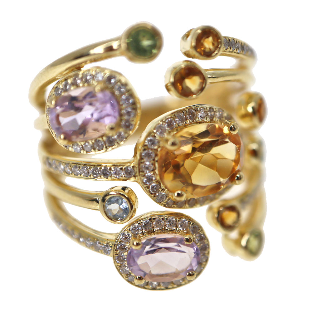 | 商品名 | ダイヤモンド シトリン アクアマリン ペリドット ローズクォーツ リング |