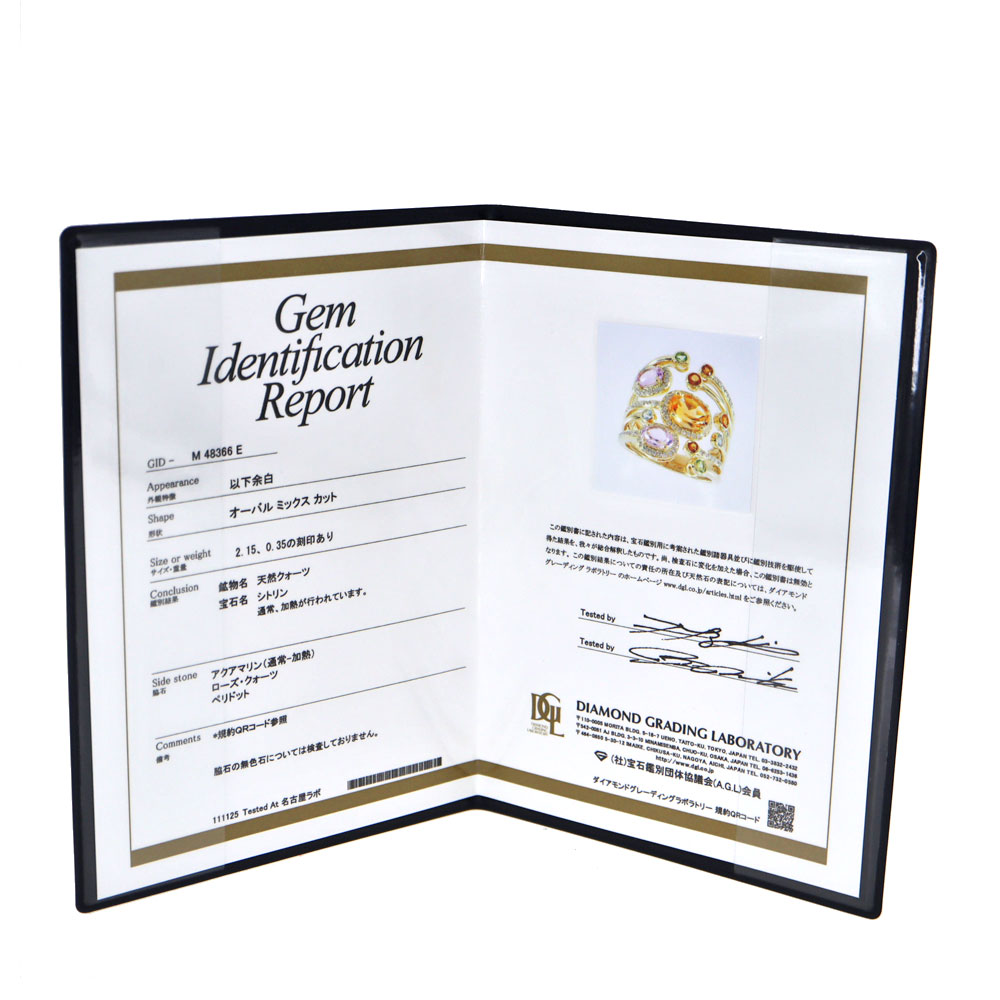 | 素材 | K18【18金】 ダイヤモンド シトリン アクアマリン ペリドット ローズクォーツ |
