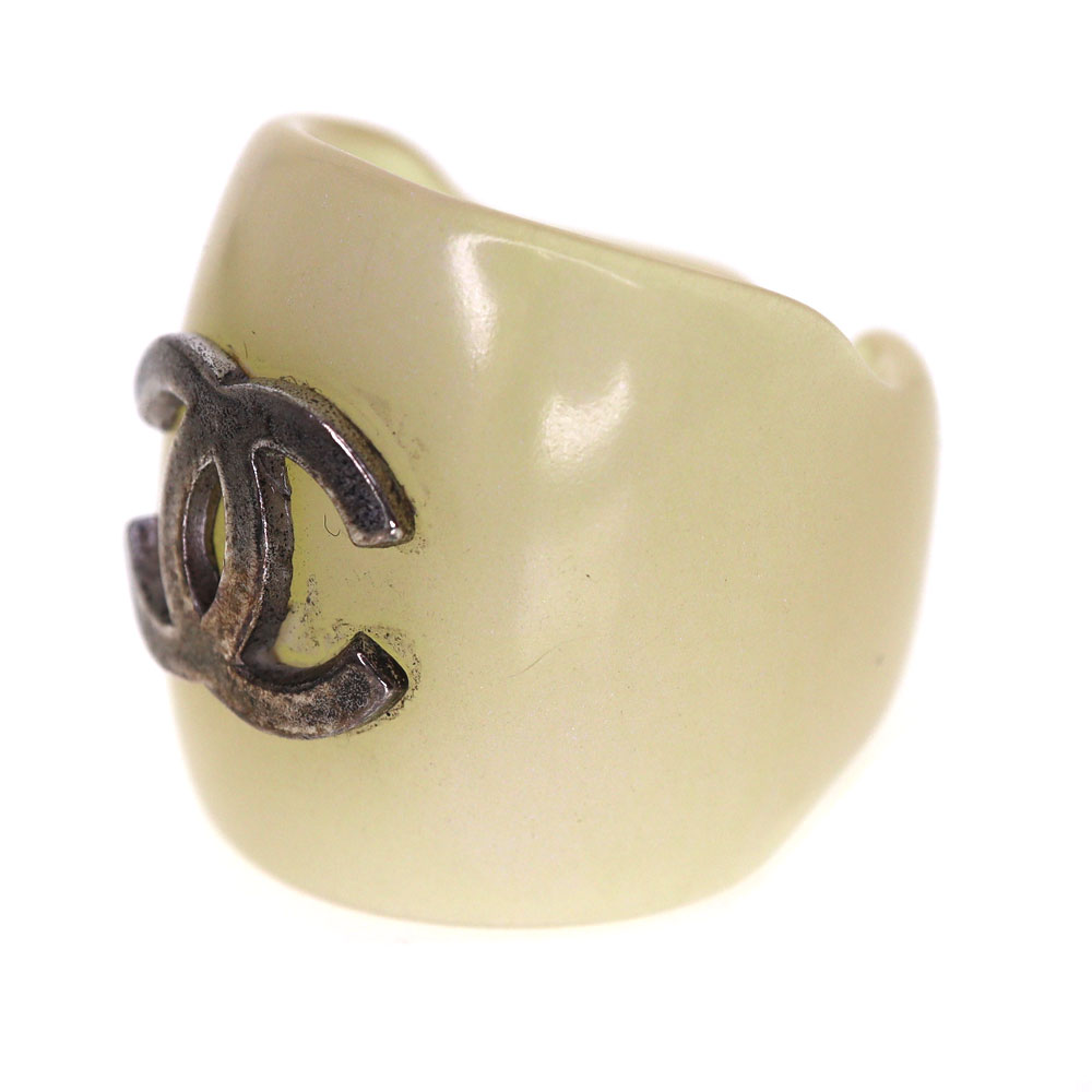 シャネルを象徴するココマークを中央にあしらった存在感あるリングです。 樹脂素材ならではの柔らかな質感とボリューム感が特徴で、指元にアクセントを加えてくれるデザインです。 軽量でつけやすく、カジュアルにもエレガントにも合わせられます。 お探しの方はこの機会にぜひいかがでしょうか。