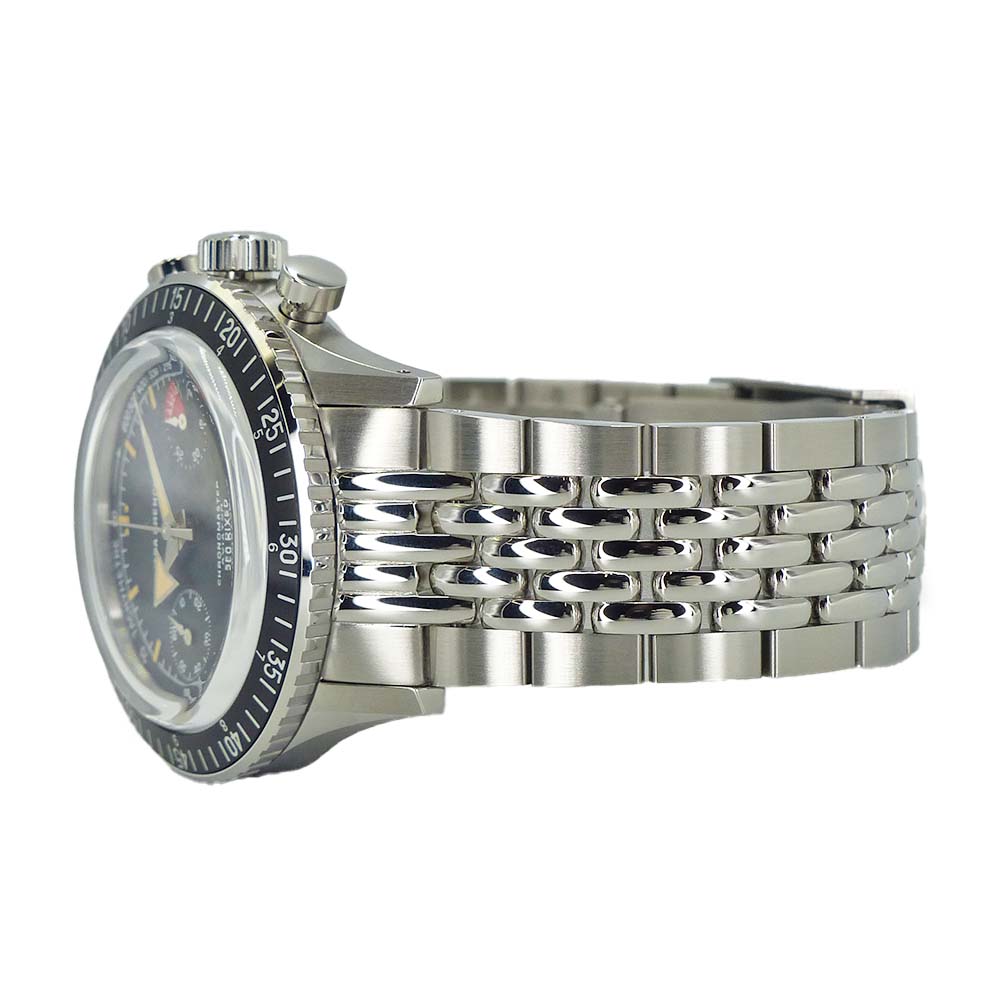 | 商品説明 | 1960年代に登場したオリジナルモデルの意匠を受け継ぎ、その特徴的な機能やデザインを丁寧に復刻したモデルです。風防にはドーム型サファイアガラスを採用し、ムーブメントには信頼性の高いセリタ製キャリバーを搭載。