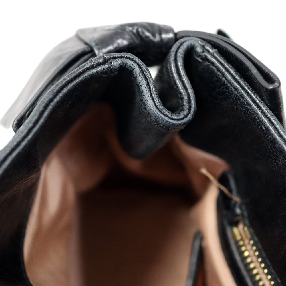 | 商品説明 | ミュウミュウのハンドバッグの紹介です。 サイドにリボンモチーフのついたハンドバッグです。 ミュウミュウのロゴがフロント付近に備えられており可愛らしさと高級感のあるアイテムとなっております。 今は販売されていないデザインですので被りづらくヴィンテージ好きにもおすすめです。 お探しの方はこの機会にぜひいかがでしょうか。