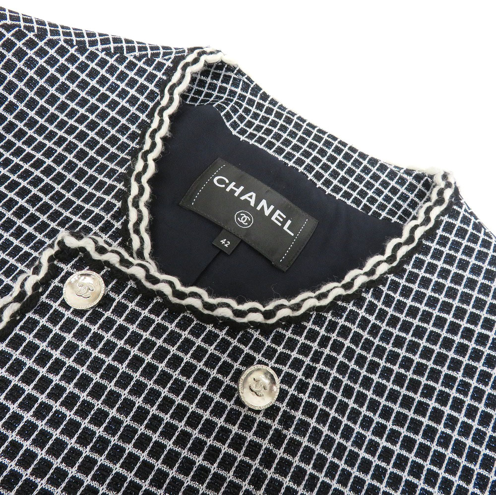 シャネルらしいツイードを使用したブラックのウールジャケット。