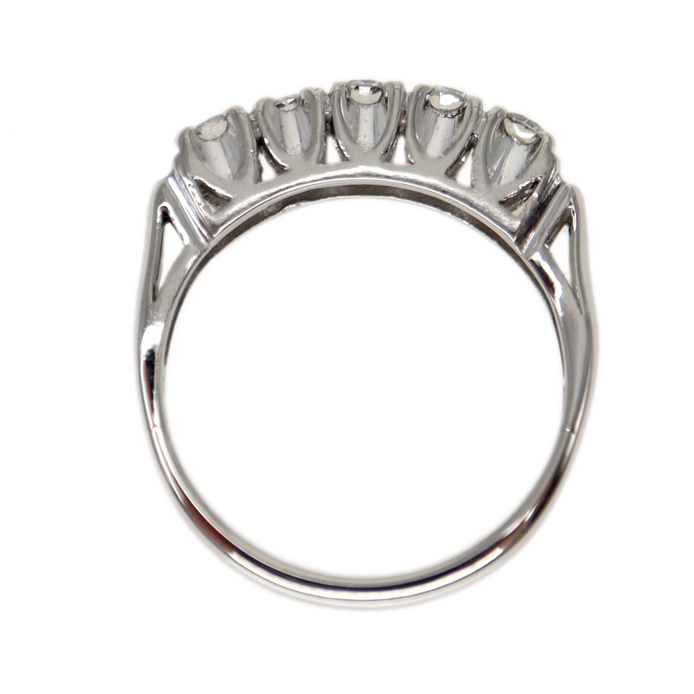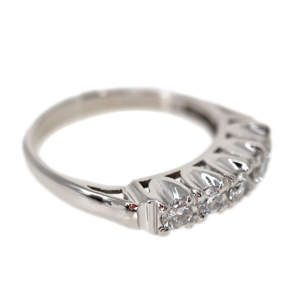 一列にセッティングされたダイヤモンドが美しい指輪です。 プラチナの輝きに加え、埋め込まれたダイヤモンドがキラキラと輝きます。