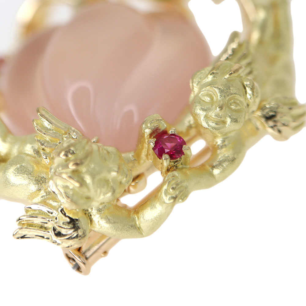 | 商品説明 | K18【イエローゴールド】ブローチ/ペンダントトップのご紹介です。 柔らかなピンク色が魅力のローズクォーツを主役に、繊細な装飾が施された華やかなデザイン。 周囲にはダイヤモンドとルビーがあしらわれ、上品な輝きと彩りを添えています。