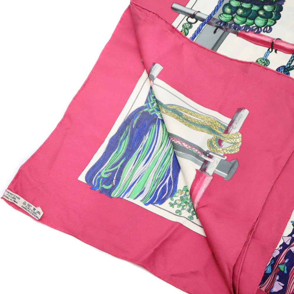 ピンク×アイボリー系のカラーでつくられたスカーフとなっております。 カラフルな紐がデザインされた個性的なアイテム、バッグに巻いたり、身に付けたり様々なシーンで活躍します。 この機会に是非いかがでしょうか。 ※尚、当サイトの販売金額より店頭での販売金額の方をお安く設定させて頂いております。(セール品等を除く) |