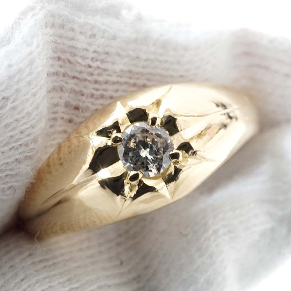 | 商品説明 | K18 ダイヤモンド付きリングの紹介です。 ダイヤモンドが一粒埋め込まれたオシャレなリングです。 一点だけでも手元を輝かせます。 是非この機会にいかがでしょうか。 ※尚、当サイトの販売金額より店頭での販売金額の方をお安く設定させて頂いております。予め、ご了承下さいませ。(一部セール品等を除く) |
