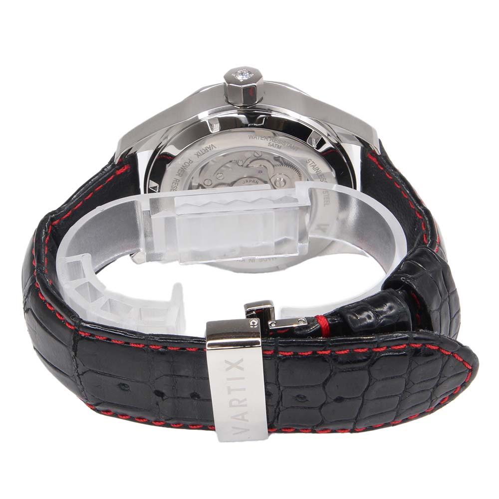 | 素材 | ケース:SS(ステンレス) ブレス:Leather(レザー) ダイヤル:レッド・ブラック ガラス:サファイアクリスタル |