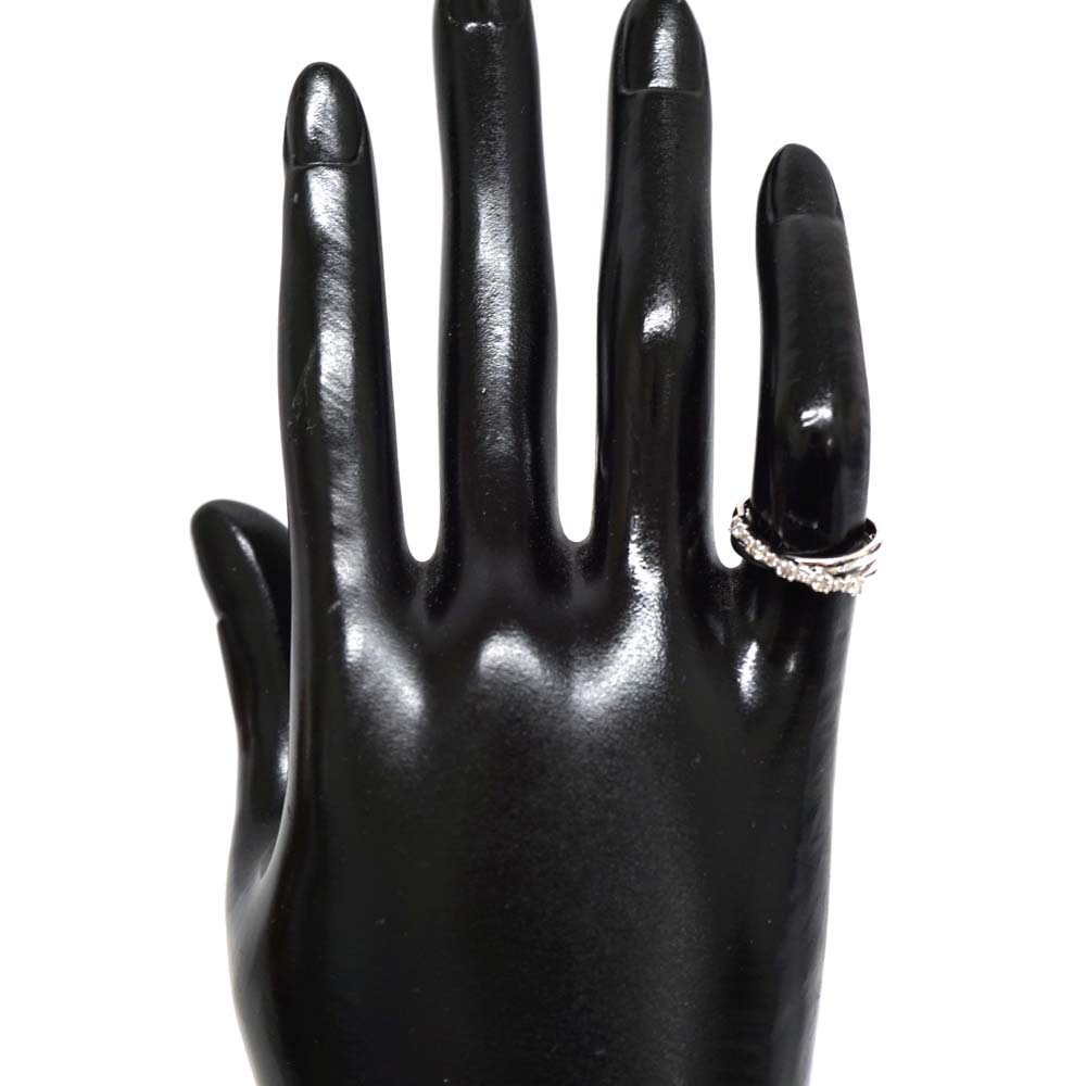 重なったデザインがオシャレなリングです。