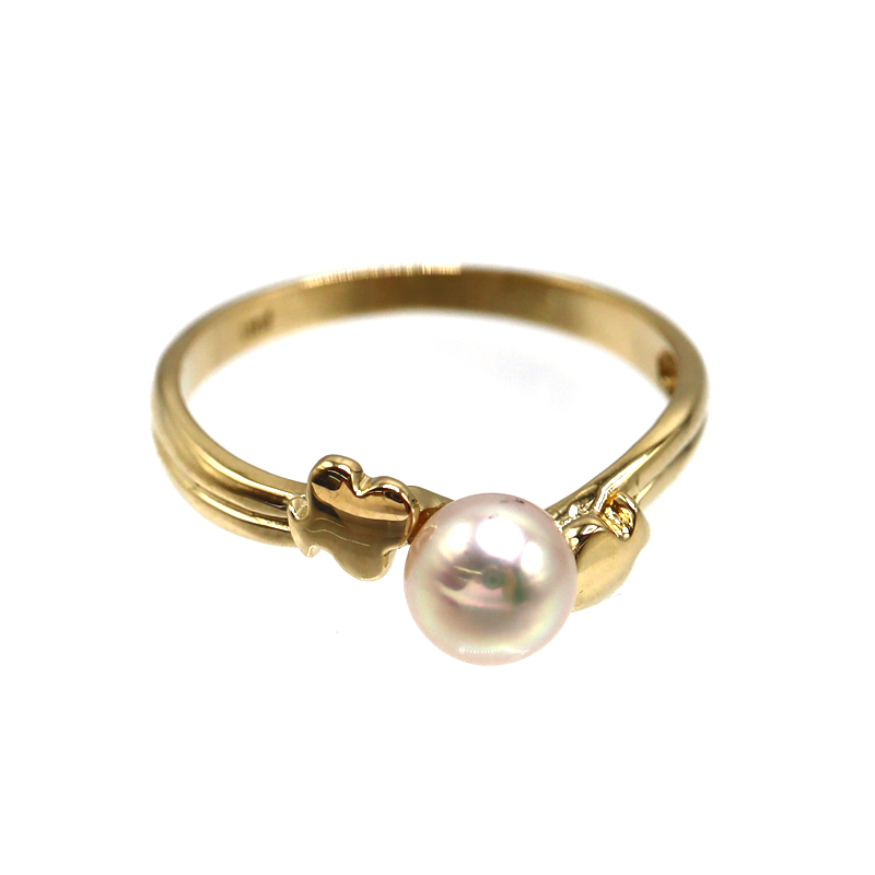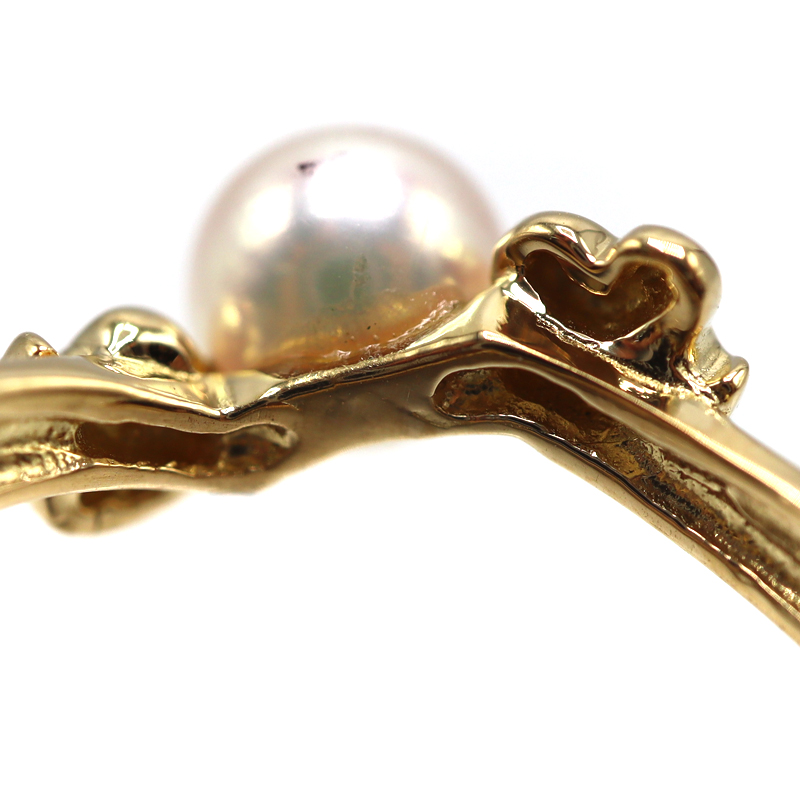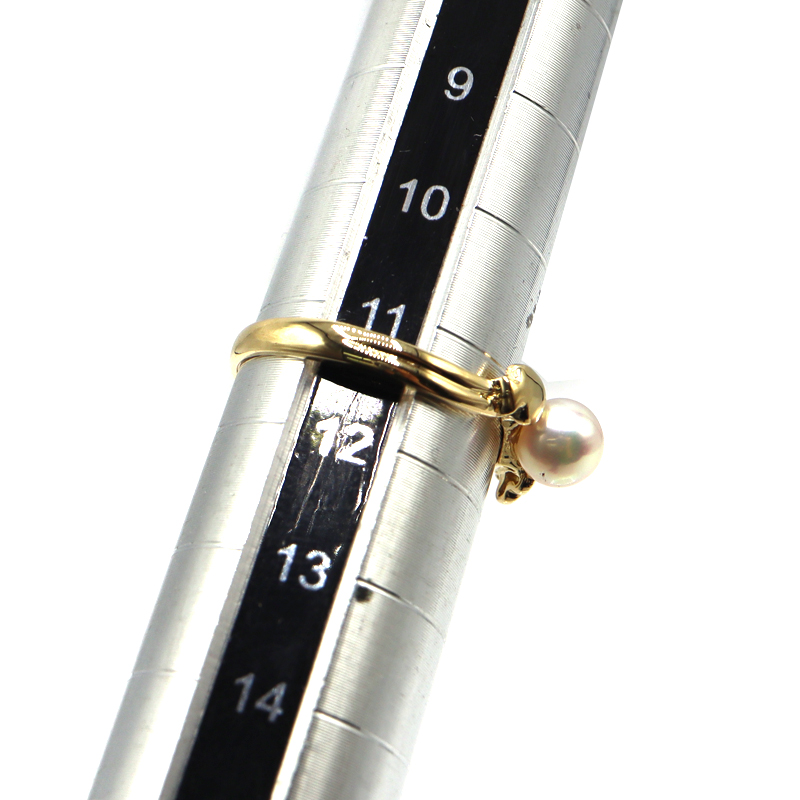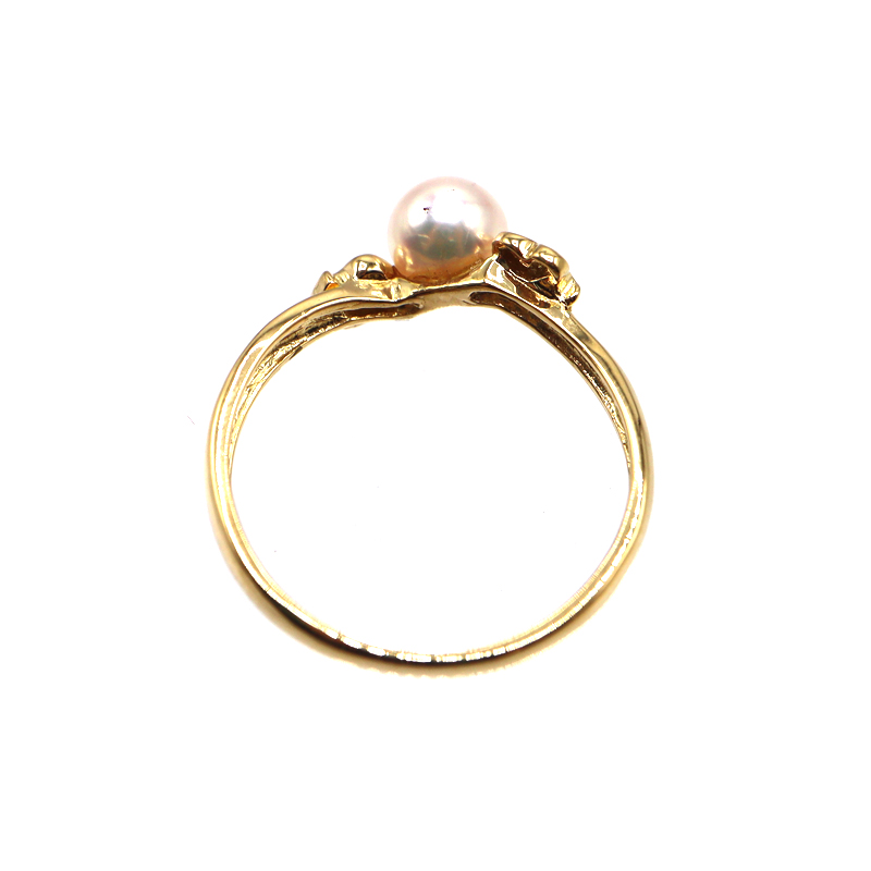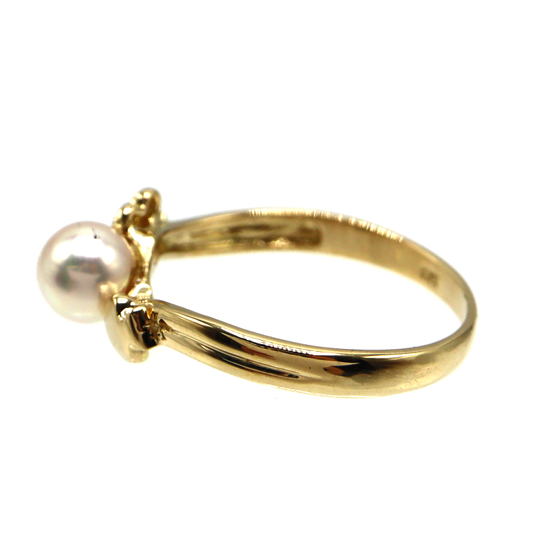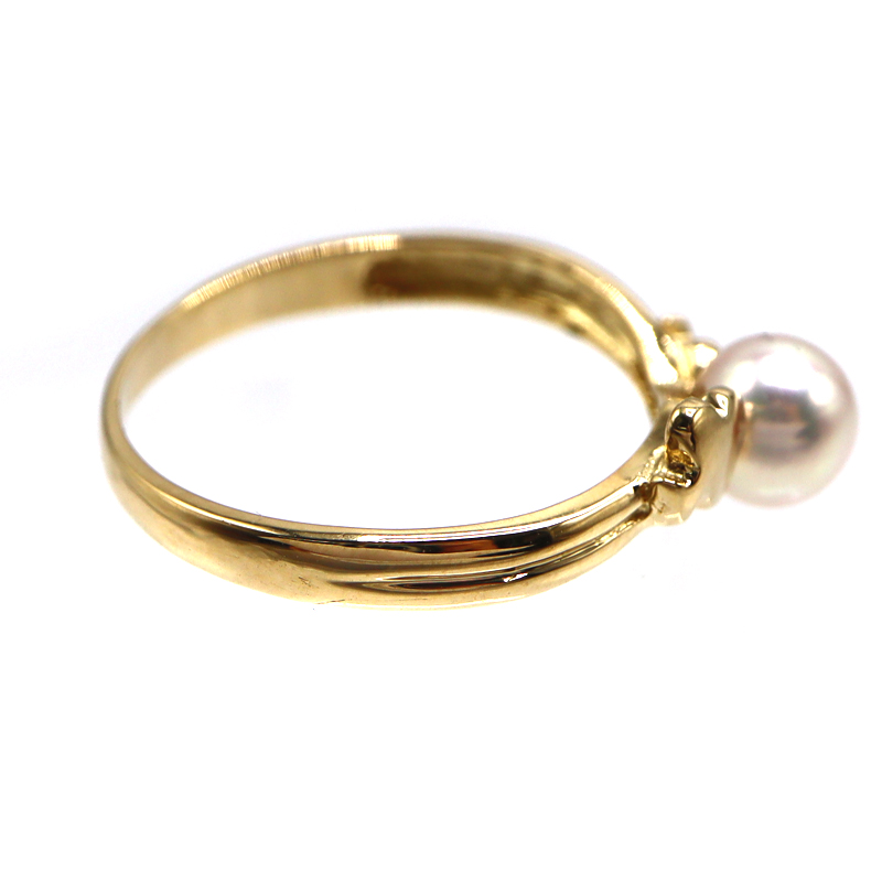 K18素材に、上品な輝きを放つアコヤ養殖真珠をあしらったリングです。