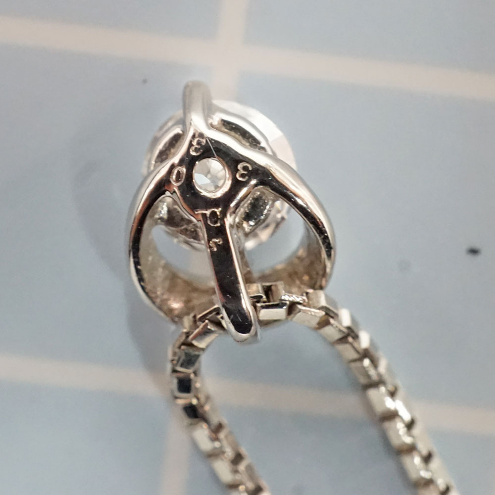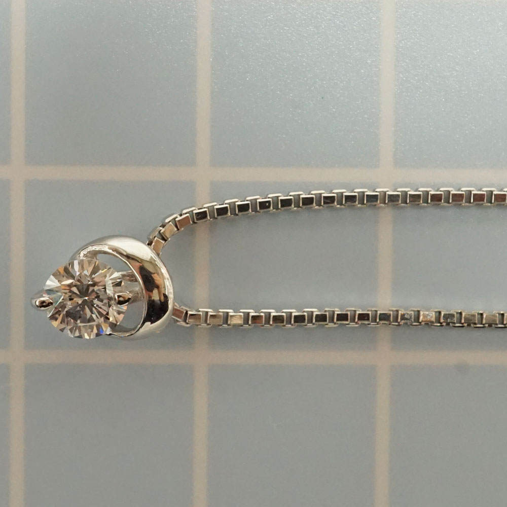 ダイヤモンドが綺麗に輝くデザインで程よい存在感あるネックレスです。 首元のアクセントにいかがでしょうか。