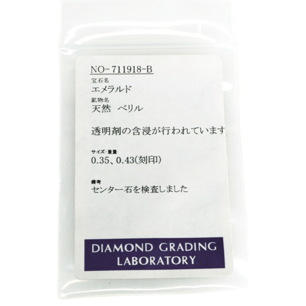 | 使用宝石 | E0.35ct(エメラルド) D0.43ct(ダイヤモンド) |
