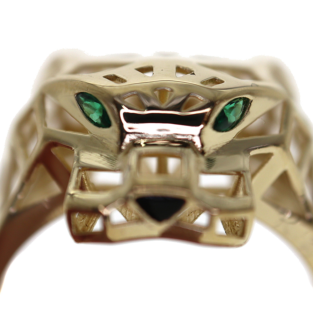 パンサーモチーフに目の部分には色石が輝いています。 見た目以上にリングの重量は軽いためお付けいただけやすいです。 男女兼用にてお使い頂けそうです。 この機会に是非いかがでしょうか。