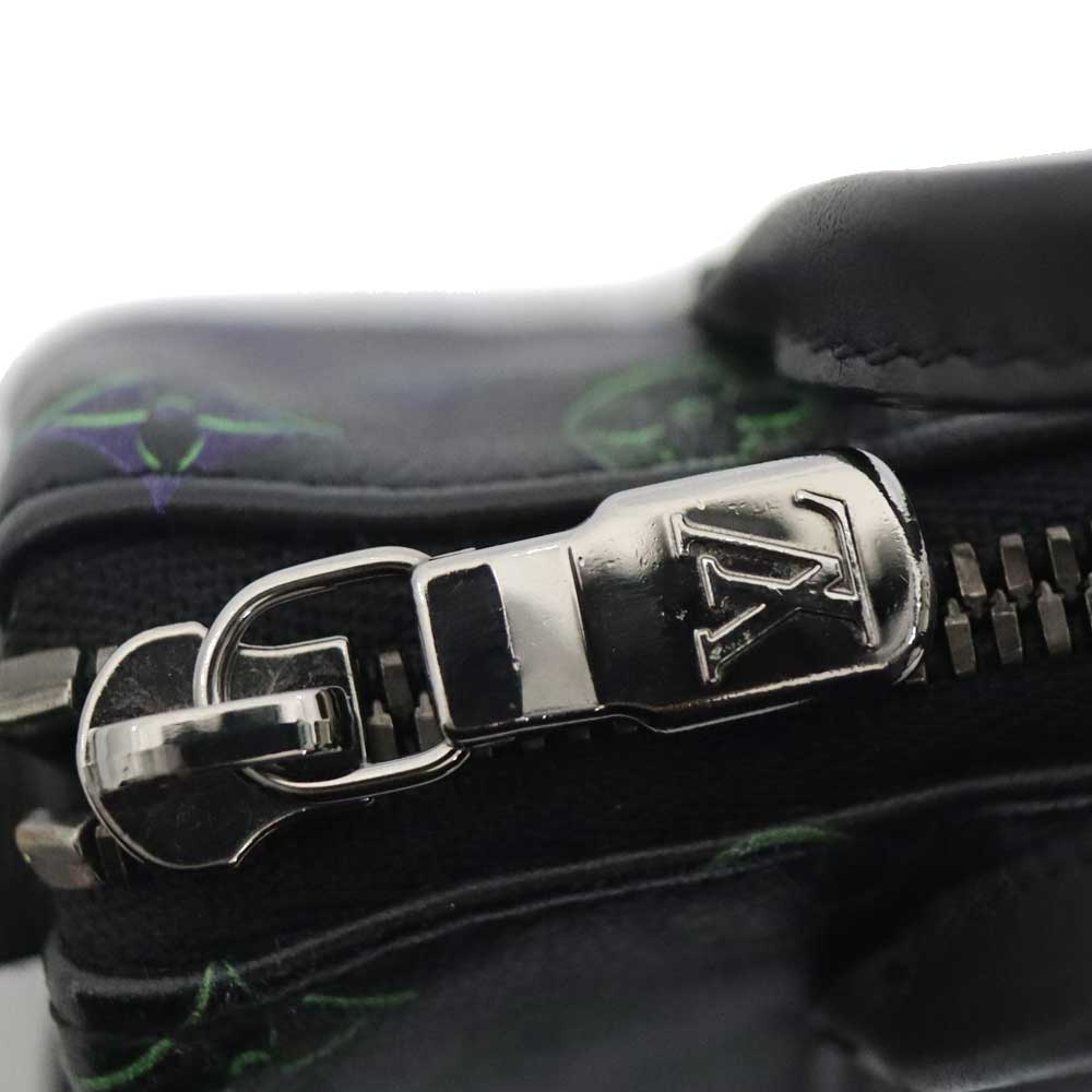 ブラックレザーをベースに色鮮やかな蛍光色のモノグラムが映える、存在感抜群の小物入れです。 ミニサイズで非常に可愛らしく、小物の持ち運びにぴったりのサイズ感となっています。 希少性が高く、コレクターズアイテムとしても人気です。 お探しの方は是非いかがでしょうか。