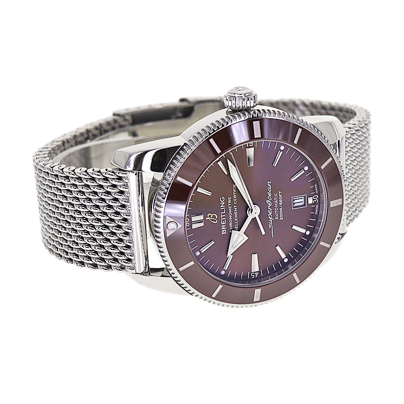 ブライトリングを代表する人気ダイバーズコレクションです。 スーパーオーシャンヘリテージは1957年に発表された復刻モデルになります。 46mmの存在感ある大きさでシンプルでヴィンテージな風合いが魅力なデザインです。 カジュアルシーン、フォーマルシーンと兼用でお使い頂ける万能ウォッチです。 お探しの方はこの機会に是非いかがでしょうか。