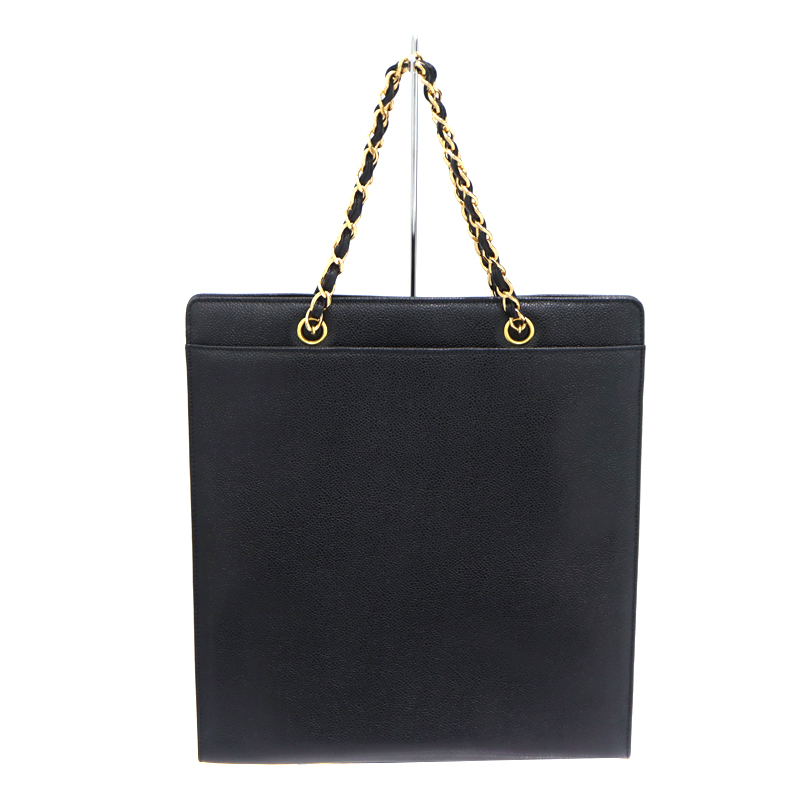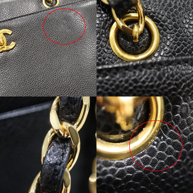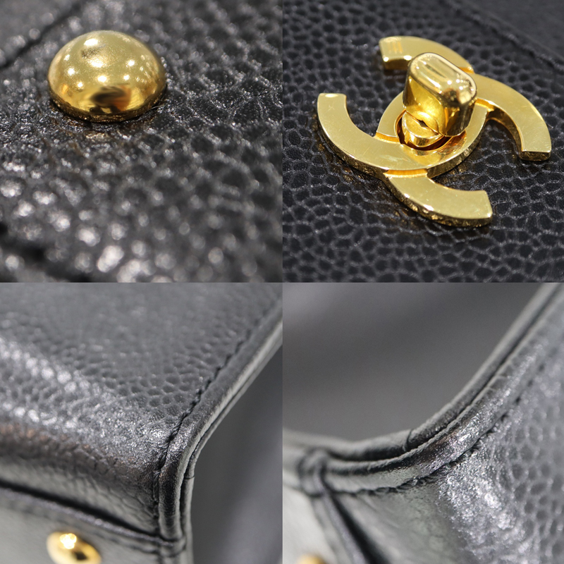 シャネルを代表する定番素材「キャビアスキン」を使用した、上品で存在感のあるチェーンハンドバッグです。