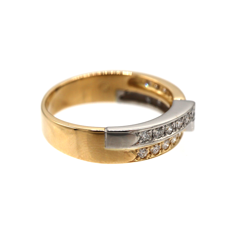 上質な素材と繊細な輝きをまとった、大人の女性にふさわしいダイヤモンドリングです。センターにあしらわれた 合計0.31カラットのダイヤモンド が、光を受けて上品に煌めき、手元に優雅な存在感を演出します。