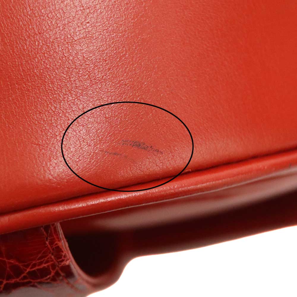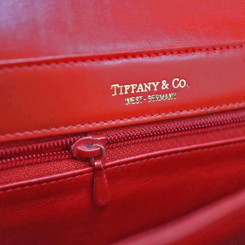 深みのあるレッドカラーが印象的な、コーディネートの主役になるバッグです。 フロントにはティファニーの頭文字である「T」の形をした、クロコダイル調の型押しレザーがアクセントとして施され、さりげない高級感を演出しています。 この機会に是非いかがでしょうか。