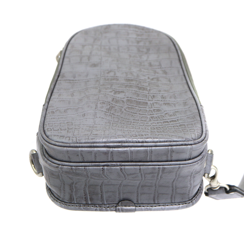 味わい深いグレーのワキシングレザーをベースに、クロコダイル型押しをアクセントとして組み合わせたデザイン。