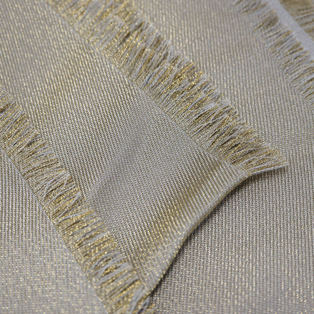 スカーフにもストールにもなる大判サイズが使いやすいアイテム。 光沢感があるグレーカラーとゴールドがゴージャスで華やかさを演出してくれます。 モノグラムの総柄になっているので、コーディネートのアクセントにピッタリです。