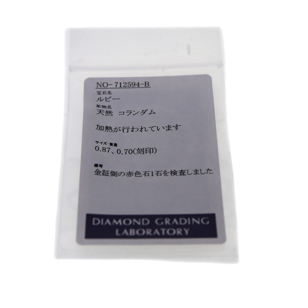 | 素材 | K18【18金】 ダイヤモンド:0.70ct ルビー:0.87ct |