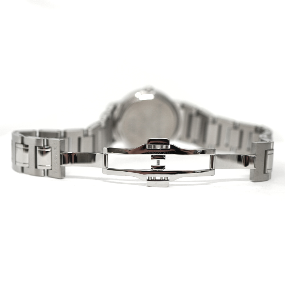 シンプルですっきりとしたデザインとベゼルのロゴが特徴的な時計です。 ビジネスシーンから普段使いなど、幅広く上品にお使いいただけます。 お探しの方はこの機会にぜひいかがでしょうか。 ※尚、当サイトの販売金額より店頭での販売価格の方をお安く設定させて頂いております。予め、ご了承下さいませ。(一部セール品除く) |
