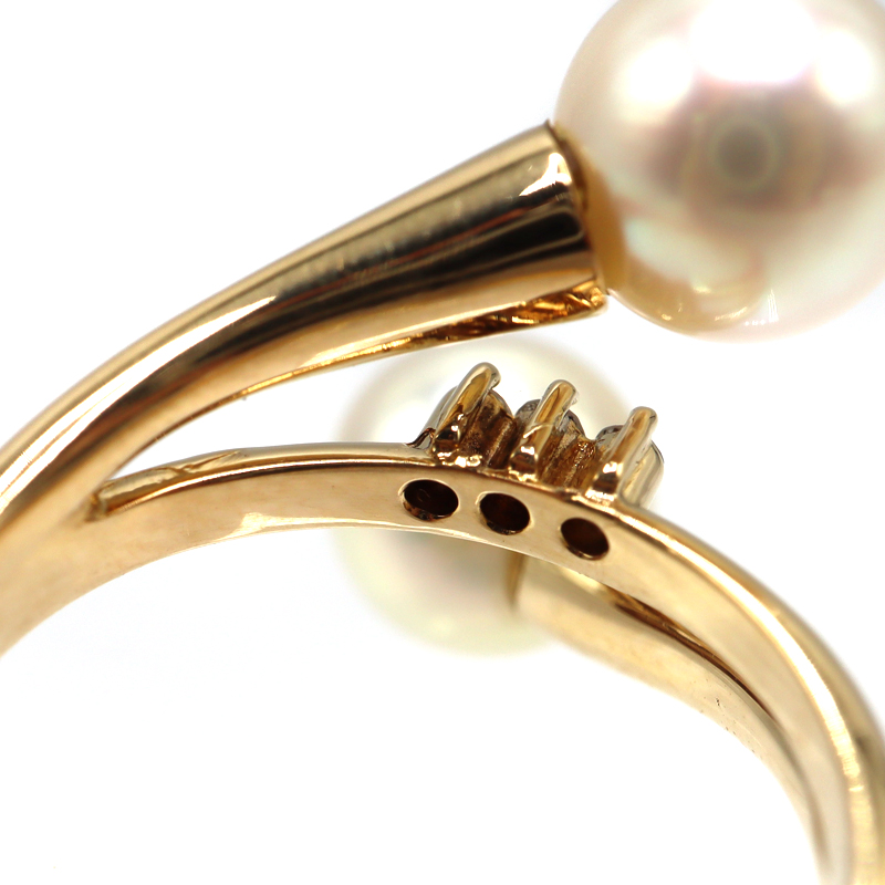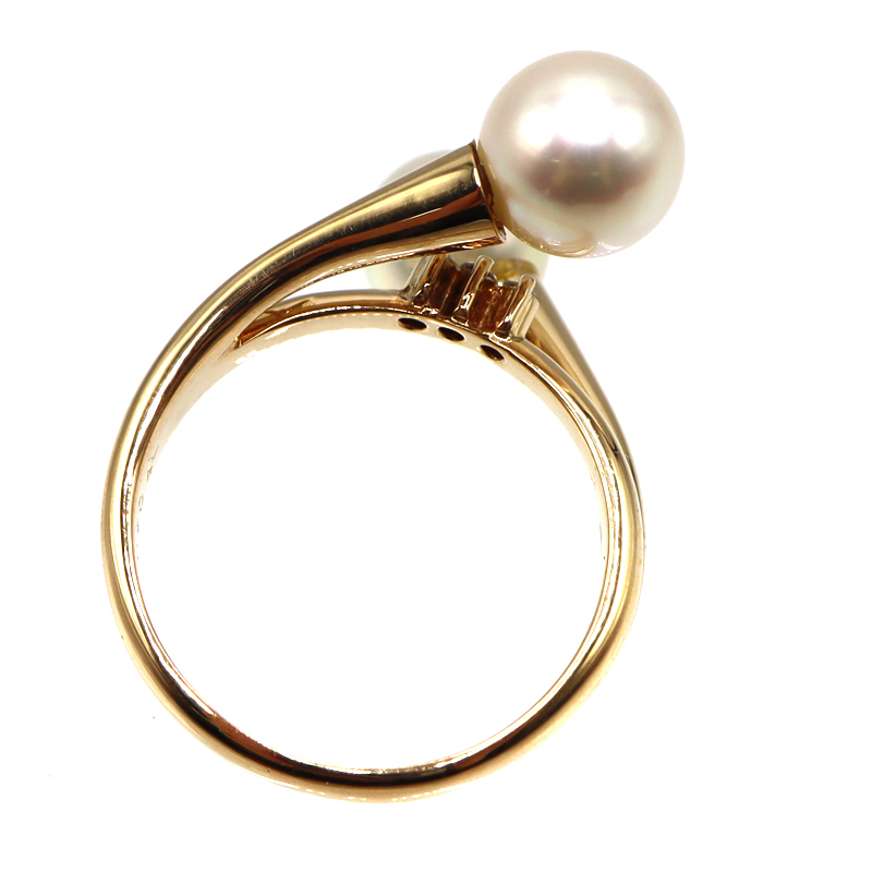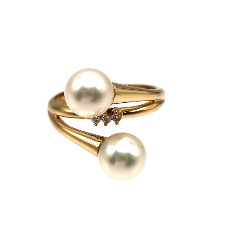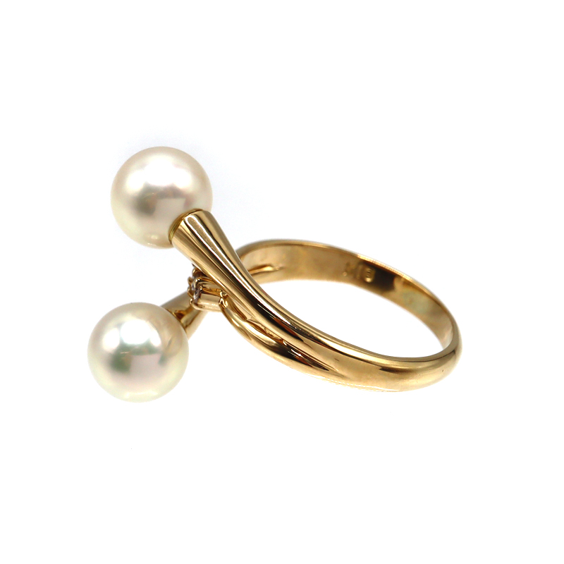 K18素材に、上品な輝きを放つアコヤ養殖真珠をあしらったリングです。