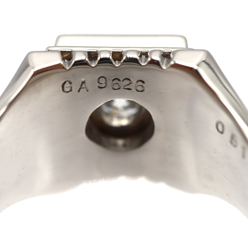 Pt900の上質な輝きが魅力の印台リングに、存在感のあるダイヤモンド(0.515ct)をあしらった一本です。