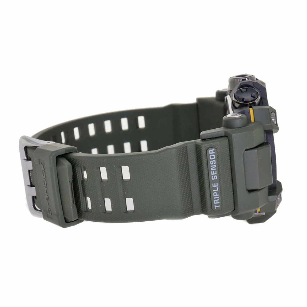 過酷な自然環境に立ち向かう男たちをサポートする「G-SHOCK MASTER OF G」シリーズです。 こちらは泥や塵に強いマッドレジスト機能を搭載したマッドマンとなり、高度・方位・気圧と温度のトリプルセンサーモデル。 トリプルセンサーや二重液晶に加えた多機能は優秀で、薄型モジュールやカーボンコア構造を採用することにより、薄型・小型化を実現しています。 落ち着いたグリーンカラーがかっこいいカジュアルなお時計です。 お探しの方はこの機会にぜひいかがでしょうか。