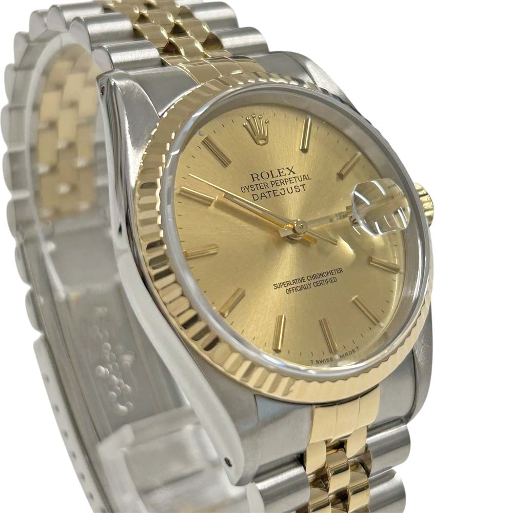 | 商品説明 | ロレックスのデイトジャスト36(モデル番号16233)は、ステンレススチールとイエローゴールドのコンビネーションが特徴の腕時計です。デイトジャストは、1945年に初めて発表されたモデルで、3時位置に日付を表示する機能を備えています。16233は、1980年代後半から1990年代にかけて製造され、堅牢で信頼性の高い自動巻きムーブメントを搭載しています。ベゼルはフルーテッドデザインで、ダイヤルのバリエーションも豊富で、ラグジュアリーな印象を与えます。ジュビリーブレスレットを装備している場合が多く、エレガントで快適な着用感が得られます。