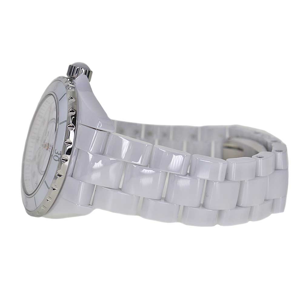 シャネルを代表するアイコンウォッチ「J12」のホワイトセラミックモデルです。 艶やかなホワイトセラミックケースとブレスレットに、ホワイト文字盤を組み合わせた洗練されたデザインが特徴の時計です。 インデックスには12Pのダイヤモンドを配し、スポーティさの中にエレガントな輝きをプラスしています。 逆回転防止ベゼルやデイト表示も備えており、実用性と高級感を両立。 この機会にぜひいかがでしょうか。