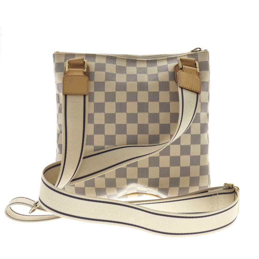 ホワイト×ネイビーの格子柄が特徴のダミエ・アズール素材となっています。 日常使いに使いやすい大きさで、長財布も問題なく収納可能です。 この機会に是非いかがでしょうか。