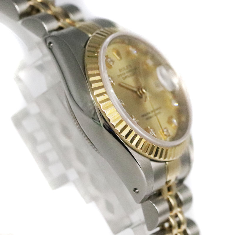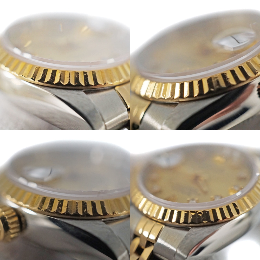 | 素材 | ケース:K18YG×SS(18金イエローゴールド×ステンレススチール) ブレス:K18YG×SS(18金イエローゴールド×ステンレススチール) ダイヤル:シャンパンゴールド×10Pダイヤ ガラス:サファイアクリスタル |