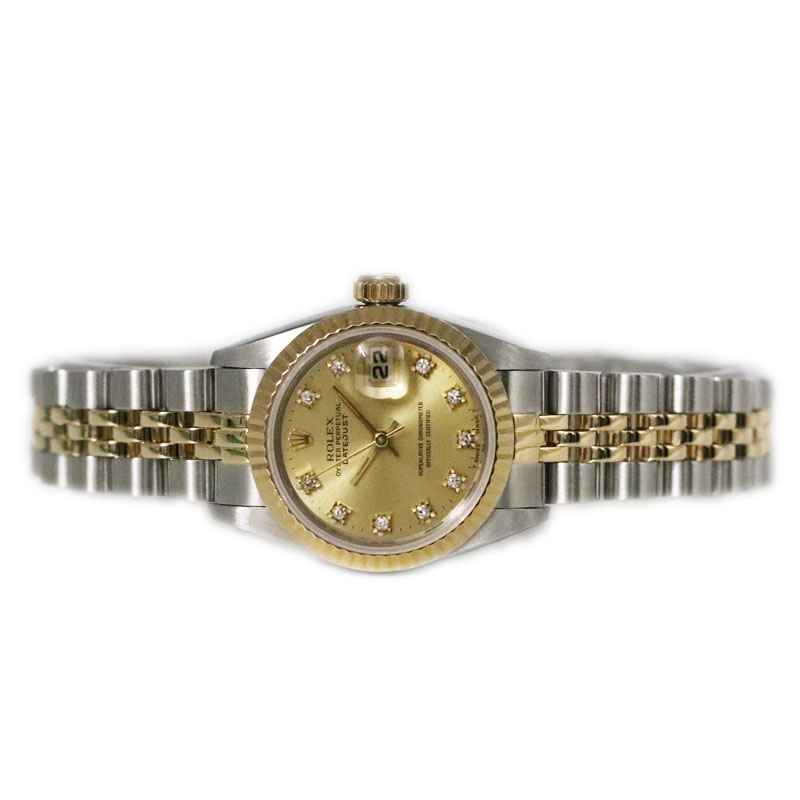 | 商品説明 | ■ROLEX【ロレックス】69173Gデイトジャストが入荷致しました。 デイトジャストとは午前0時頃瞬時に日付が変わるデイトジャスト機構、全回転式ローターを搭載したパーペチュアル機構、強い耐久性携えたオイスターケース、ロレックス三大機構を搭載したモデルです。 美しいカッティングが施されたフルーテッドベゼルとブレスレット中央パーツに18Kイエローゴールドに加え、こちらは文字盤に10ピースダイヤを使用した、ゴージャスでラグジュアリー感溢れるモデルですので、手元を華やかにしてくれます。 様々なシーンや年代関係なくお使いいただけます。 この機会にぜひいかがでしょうか。 ※尚、当サイトの販売金額より店頭での販売金額の方をお安く設定させて頂いております。予め、ご了承下さいませ。 |