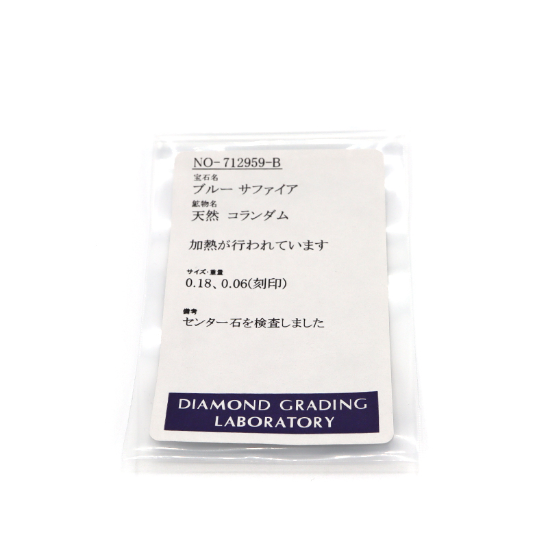 | 素材 | Pt850(プラチナ)※トップPt900/S0.18ct(サファイア)、D0.06ct(ダイヤモンド) |